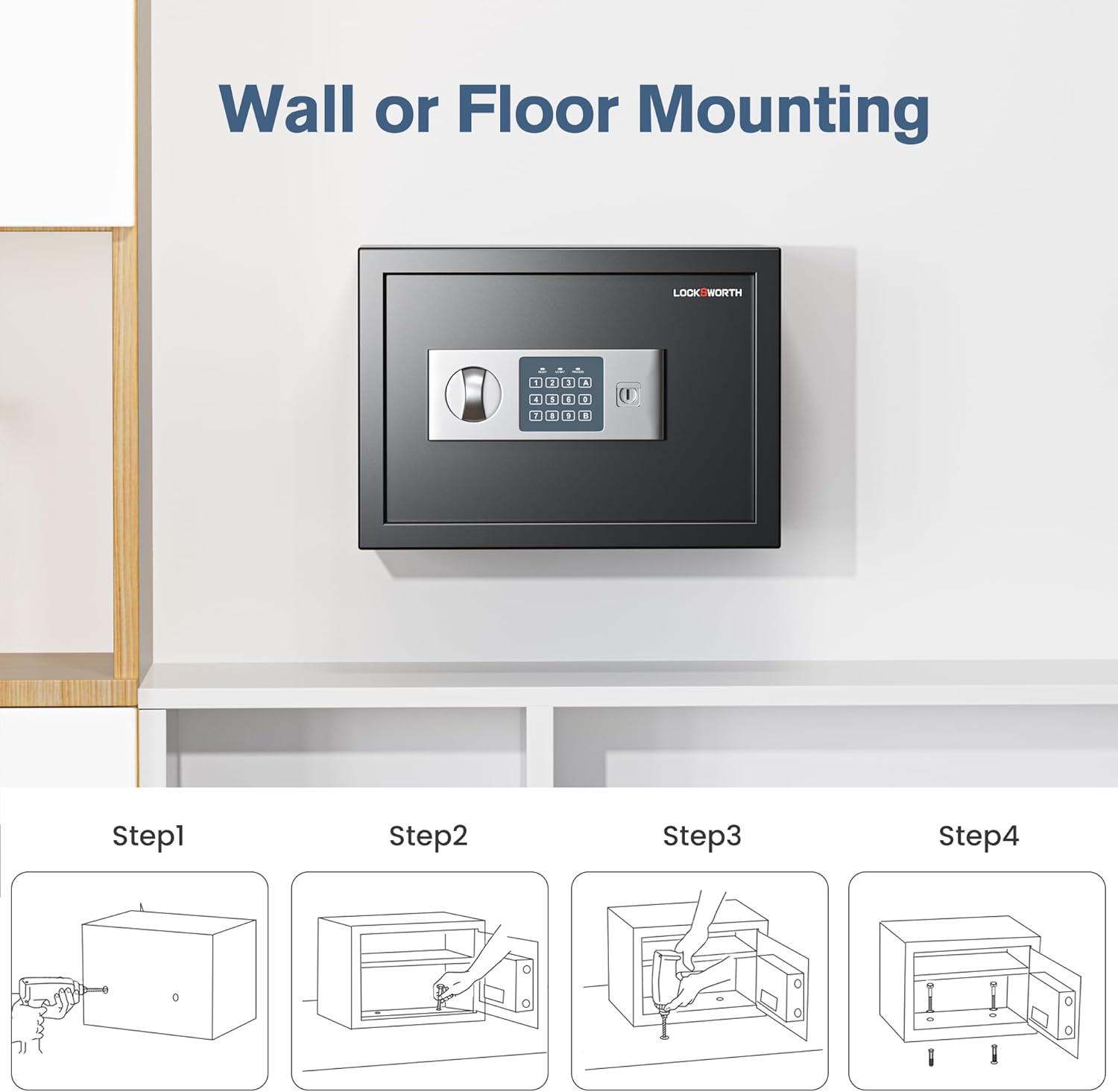 Keep your valuables secure with this 0.6 cubic feet digital security safe, perfect for home, office, hotel, or personal use. Designed to store money, jewelry, important documents, and firearms, this lock box provides peace of mind with digital keypad access and strong, durable construction.