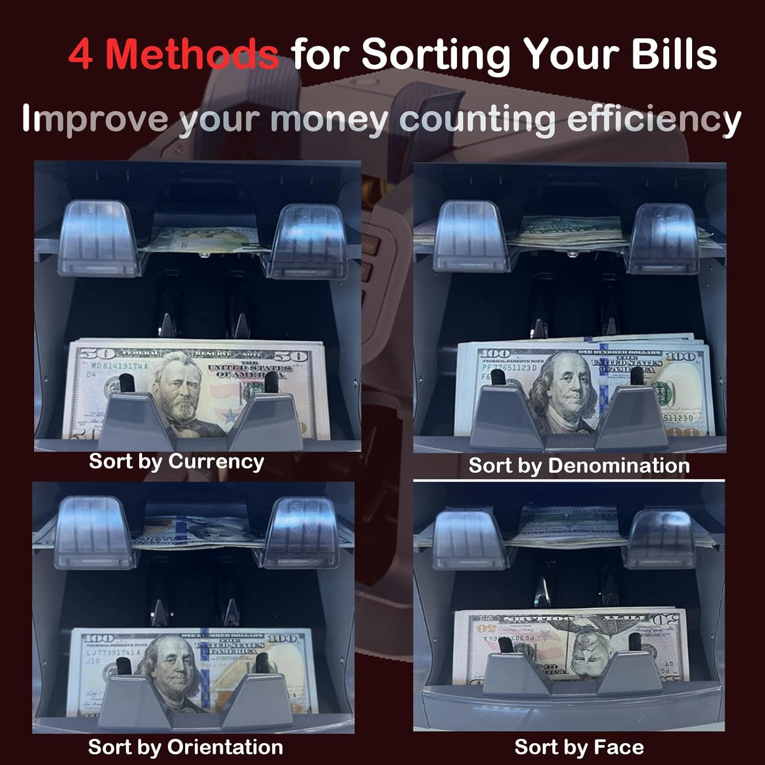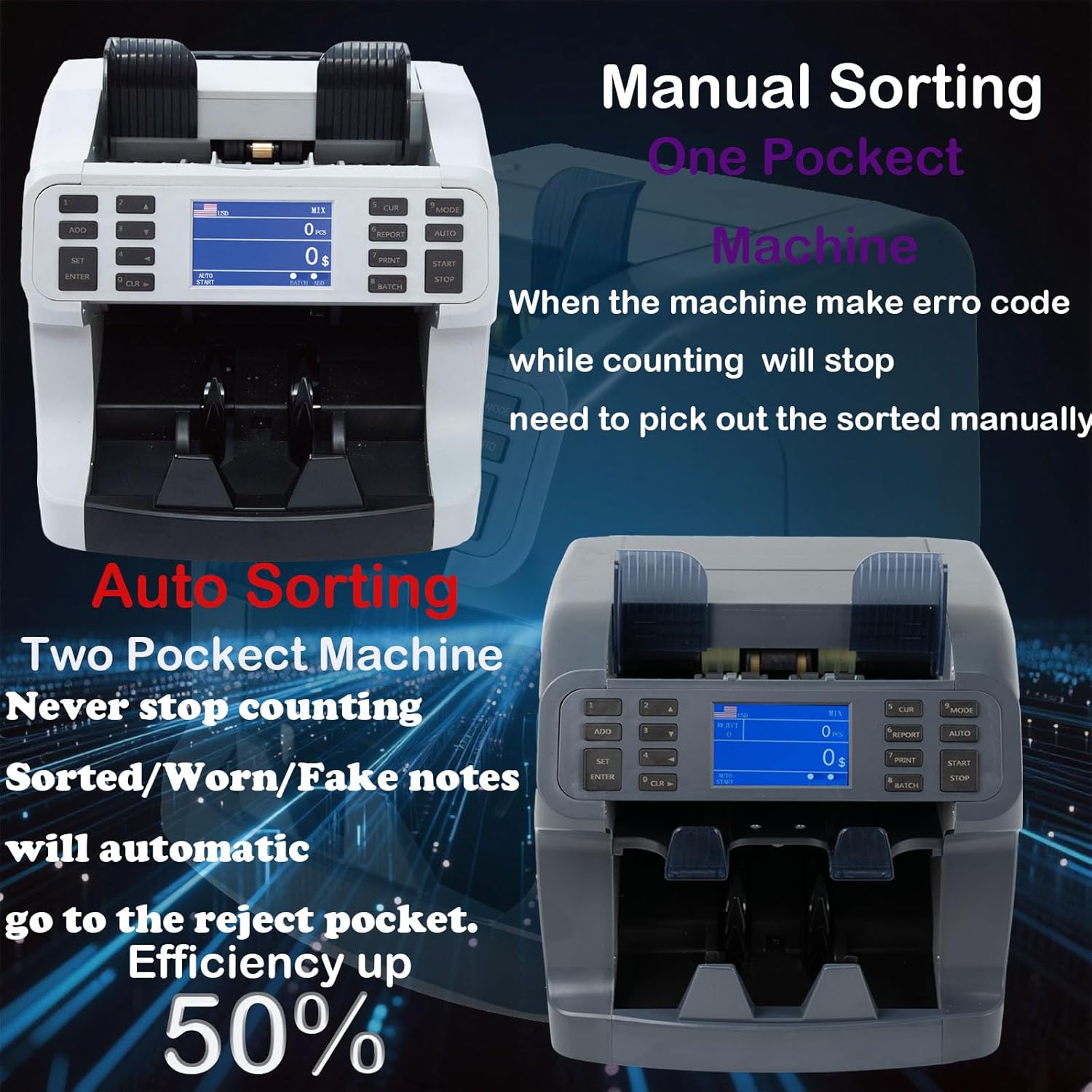 The dual-pocket design allows for simultaneous sorting of mixed denominations, saving time and improving workflow in high-volume cash environments. With fast and precise value counting, this sorter is a reliable solution for businesses that demand accuracy, efficiency, and fraud prevention.